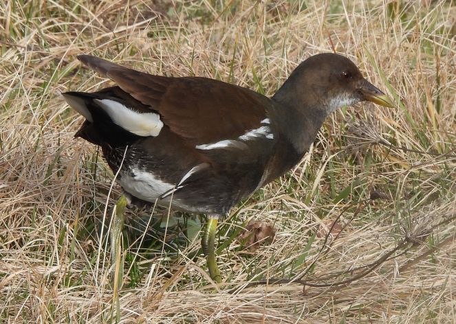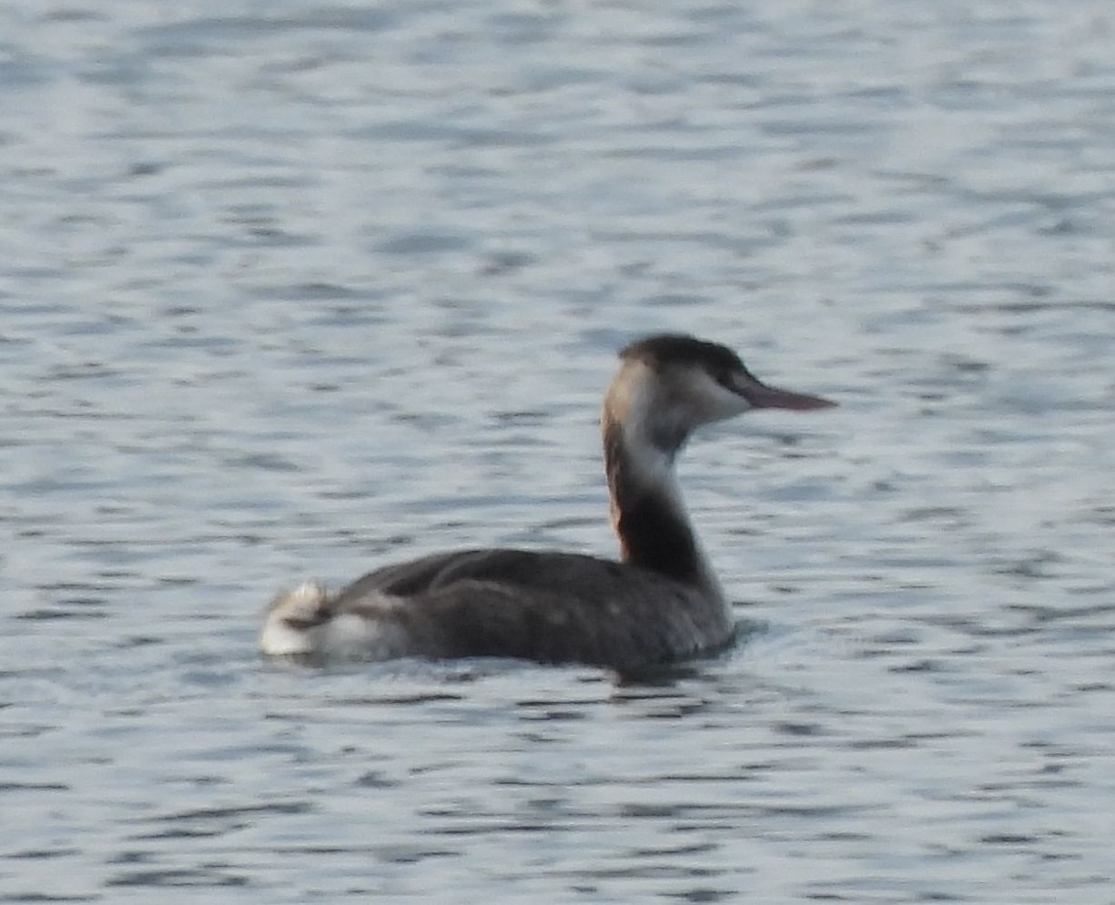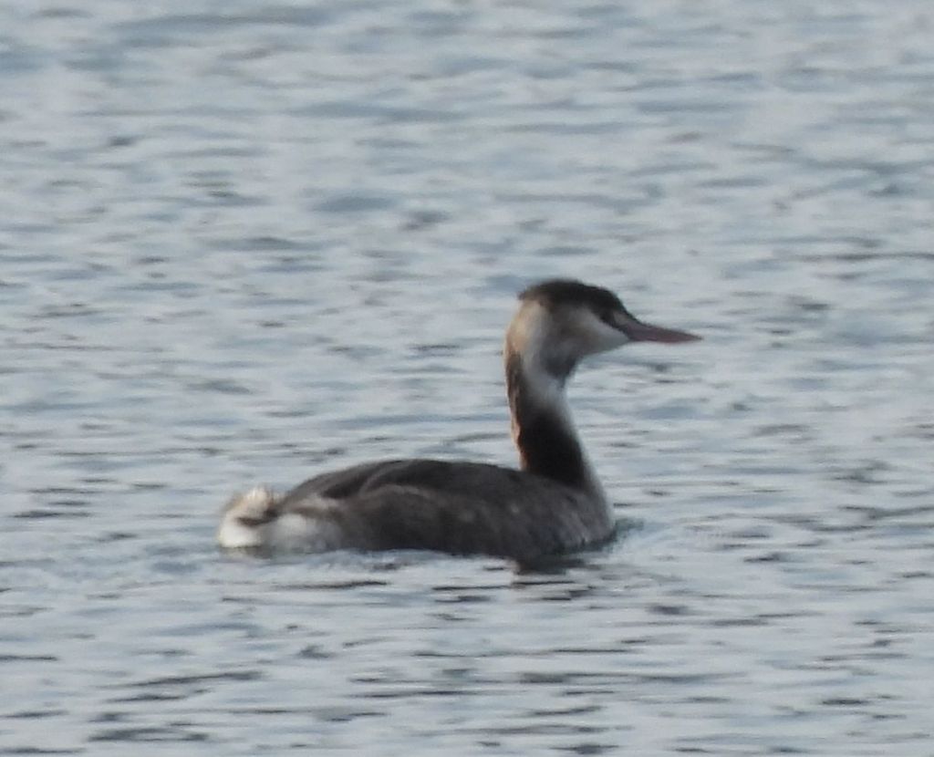Spoiling for more I took a walk around the lake at Divonne. At first I was disappointed by the very few birds on the water. However, I was able to broaden my knowledge, recognizing Gadwalls on the walk out. Coming back past the “beach” I saw why there was virtually nothing on the water. The pontoons were crowded with Herons, Cormorants and Grebes.
