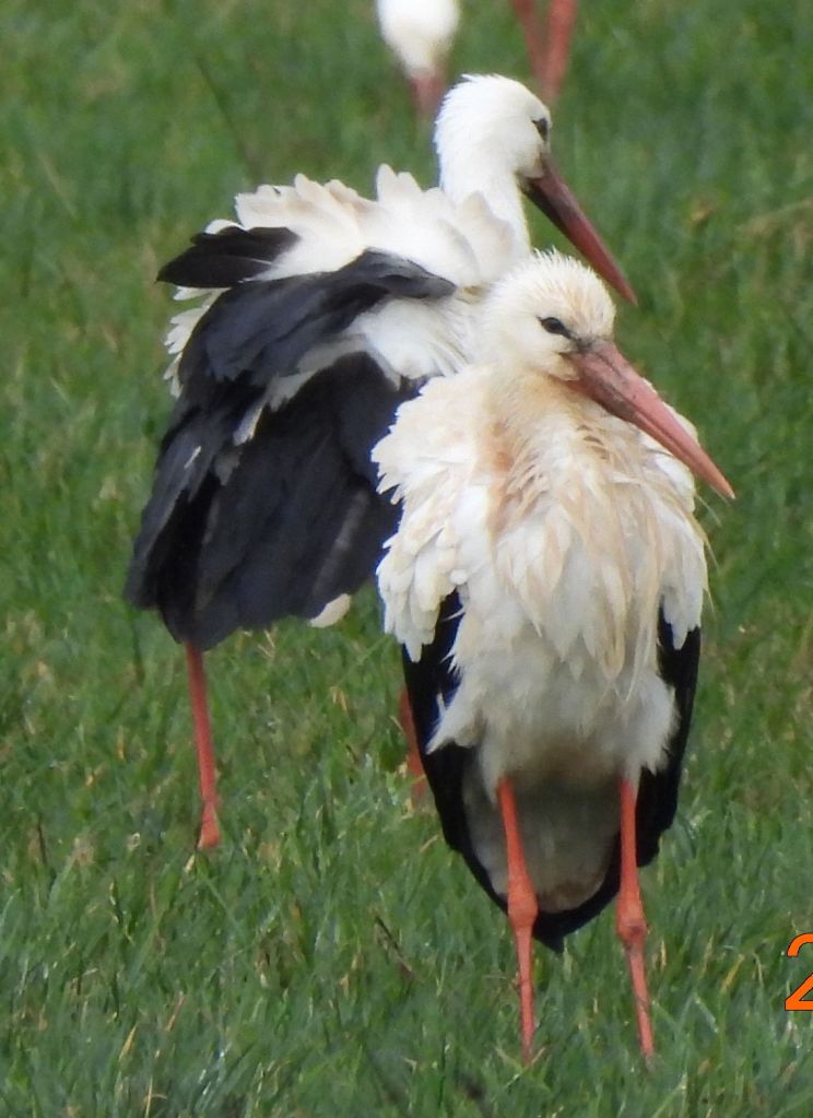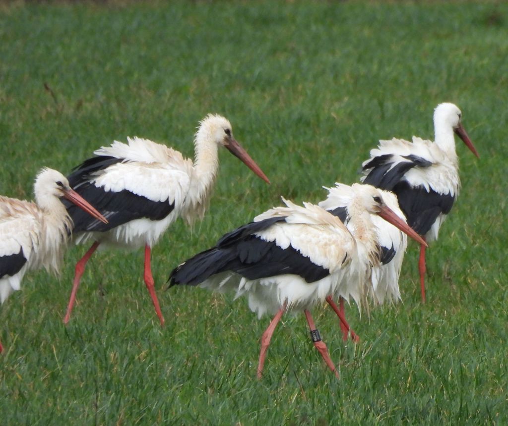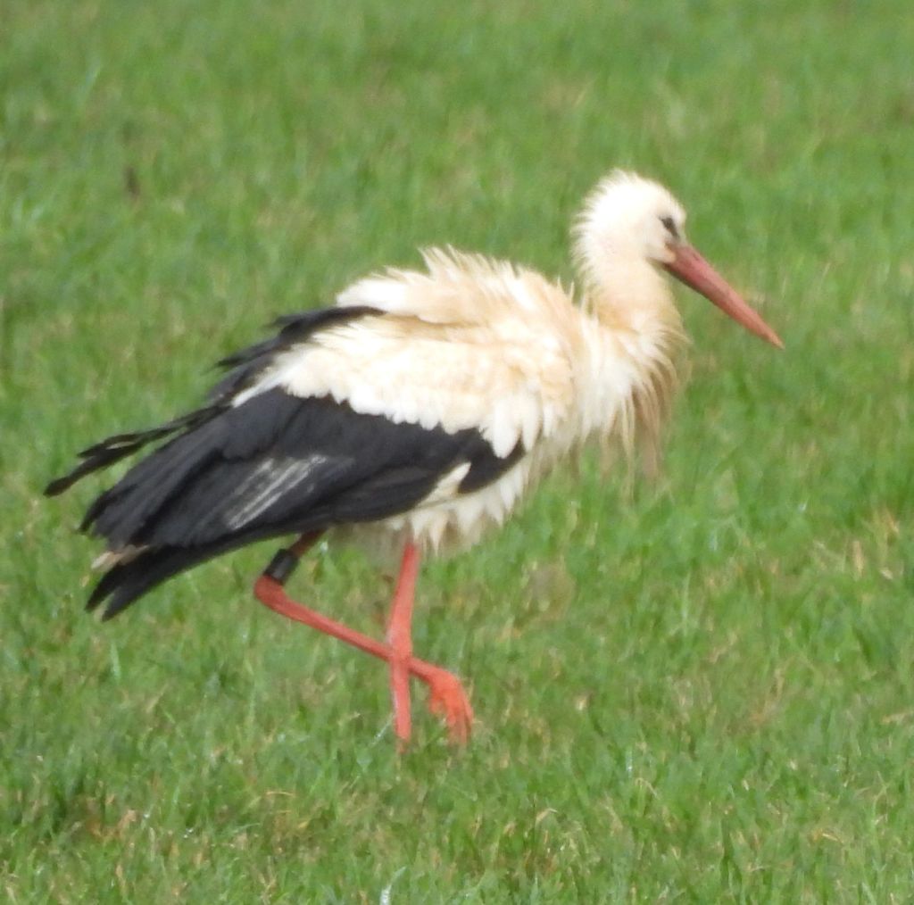 Yesterday my daughter told me she’d seen storks out by the Divonne exit of the motorway. It was raining, as usual this year, but I grabbed my camera and got out there. Sure enough in the field by the motorway, on the Swiss side, there were loads of them. Sheena counted 28 in the first flock, about 300m from where we parked. There was a second flock of about 40 much further in. I set off to get nearer. The field was soaked and I was almost wading to get nearer. They all looked very scruffy and are certainly resting in the course of their long journey back to Northern Europe. Of course they decided to escape the paparazzi and as I approached, one by one, they took to the air. Flying off to join the larger congregation half a kilometre away. The wingspan is really impressive!