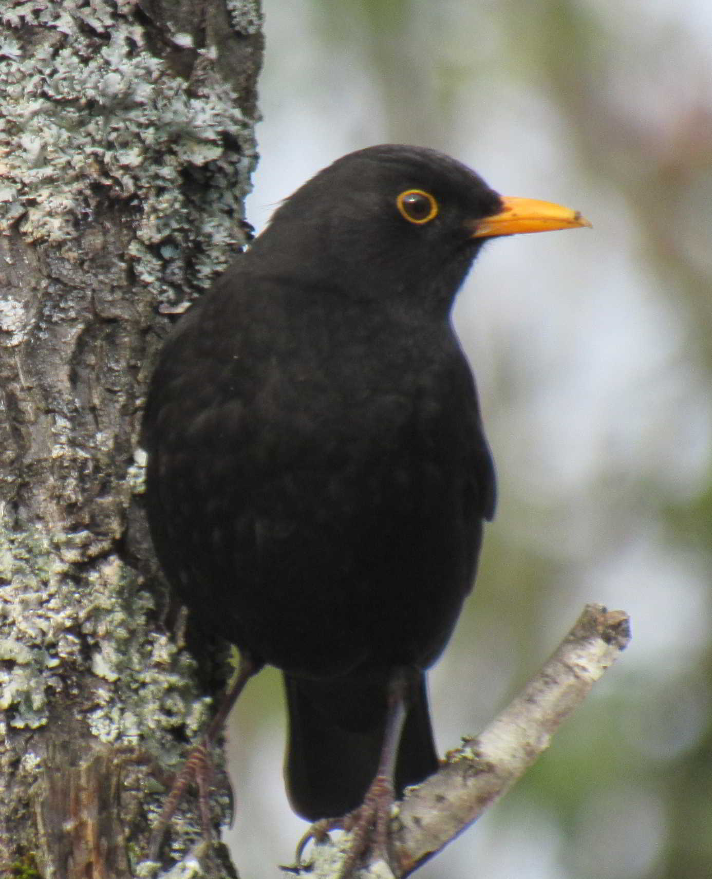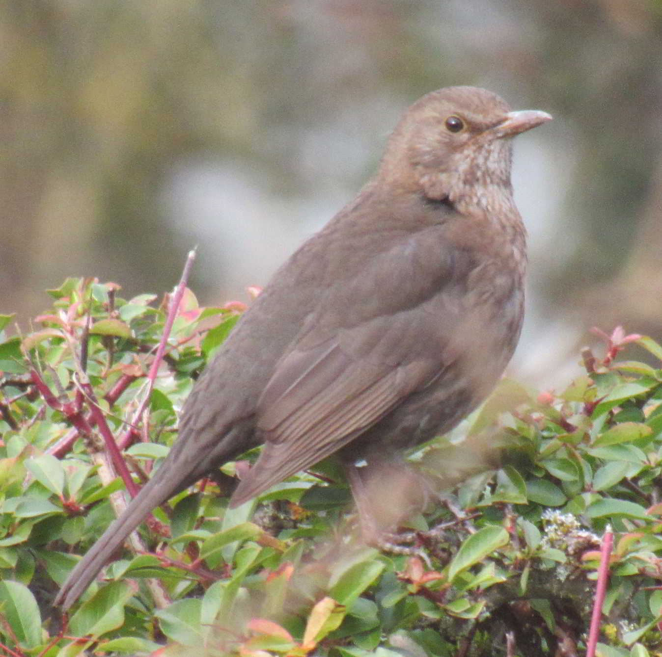 Normally blackbirds scutter about the hedge bottom making a din and reminding us all of “Stairway to Heaven”. But today he decided to sit up in the plum tree, bold as brass and looking quite dapper. I got a few shots before I wondered, why the behaviour change? Cherchez la femme the French say. And there she is sitting in the hedge about three feet behind the plum tree. Is this the start of an early spring romance?