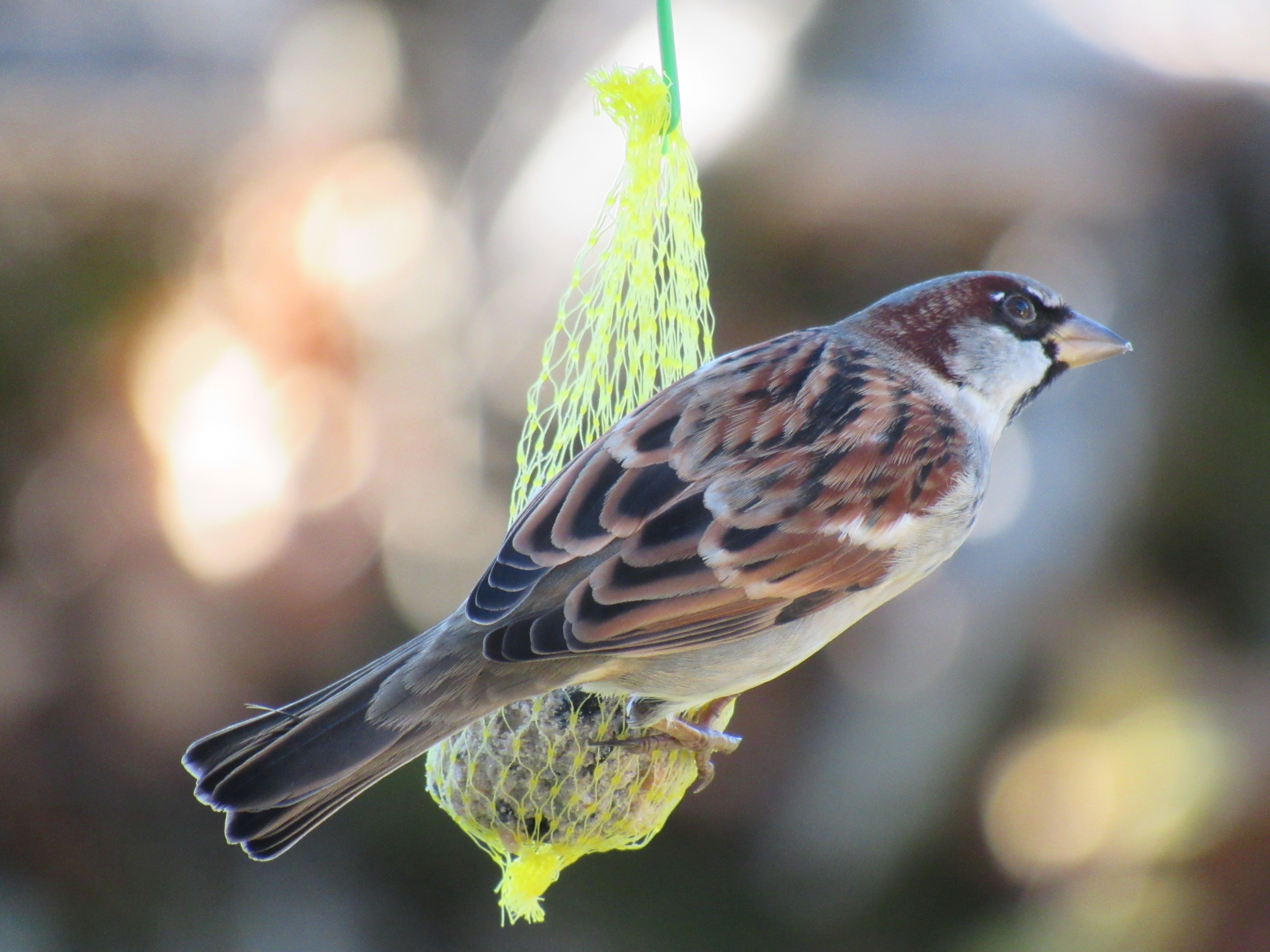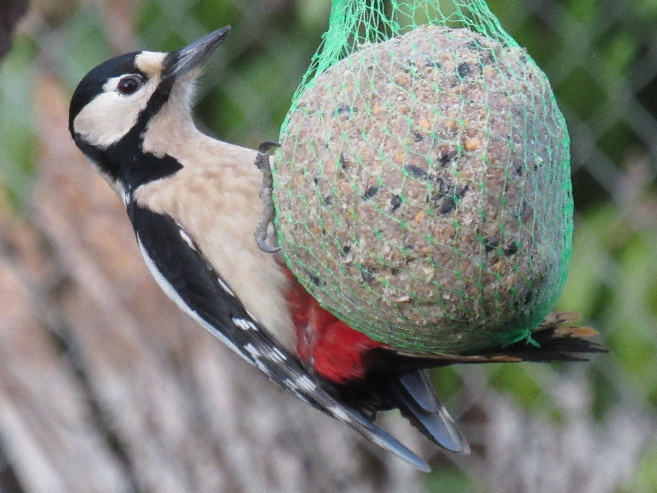 The chief invader remains the squirrel who, inspite of all my fancy rigging, still devours our fat balls. He is colourful too.